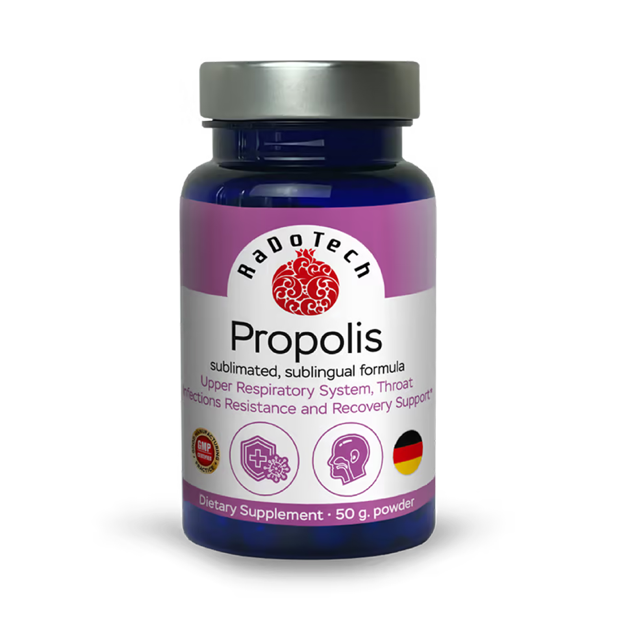 Manufactured in a GMP-compliant facility in Germany, this supplement combines Propolis extract with other immune-boosting natural ingredients, such as Carrots, Spinach and Beets powder, Ascorbic Acid powder (Vitamin C) and more.